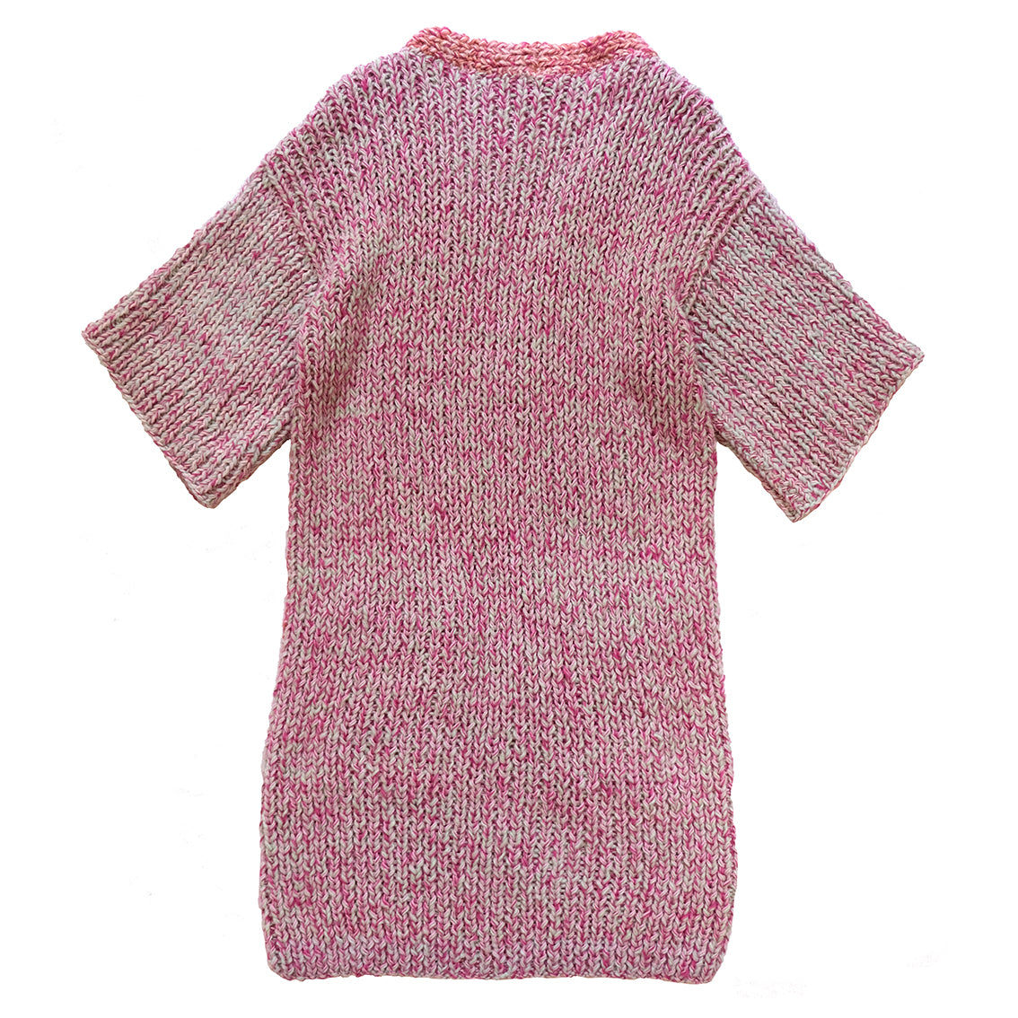 multicolor blush and coral front panels, seafoam and magenta back and sleeves